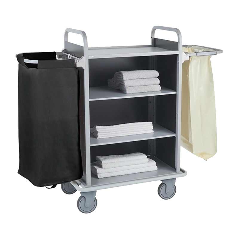 Carro de andares IBIZA S – carro de andares com estrutura tubular em aço. Painéis laterais e traseiro em HPL com 4 acabamentos à escolha. Para-choques perimetral na base.