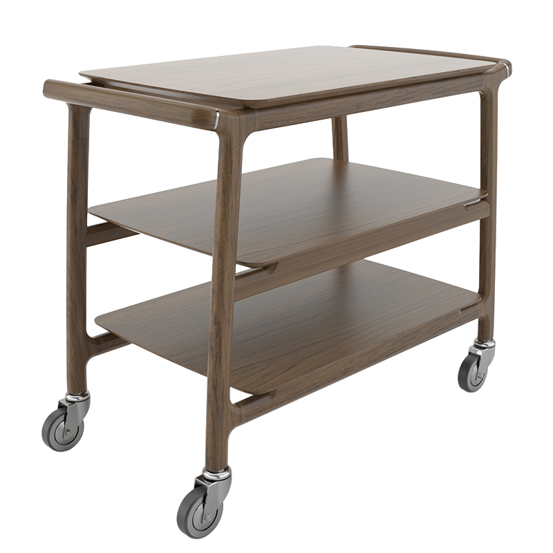 Carro de apoio de serviço Alto 3 – em madeira maciça, pegas em ambos as laterais e três prateleiras.