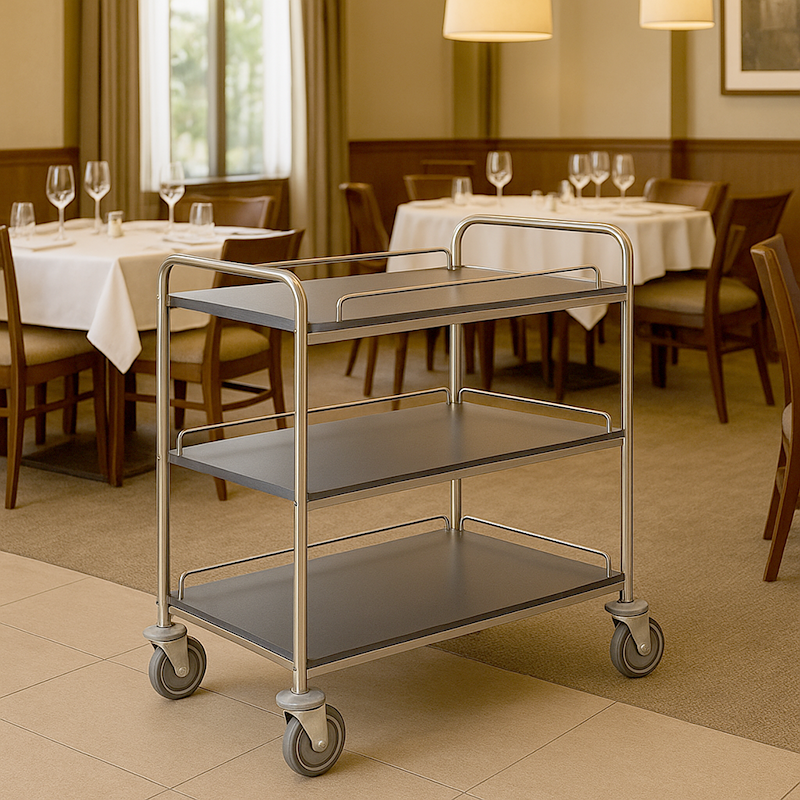 Carro de apoio de serviço PASSEPARTOUT 3 – com estrutura tubular cromada e pegas de ambos os lados.