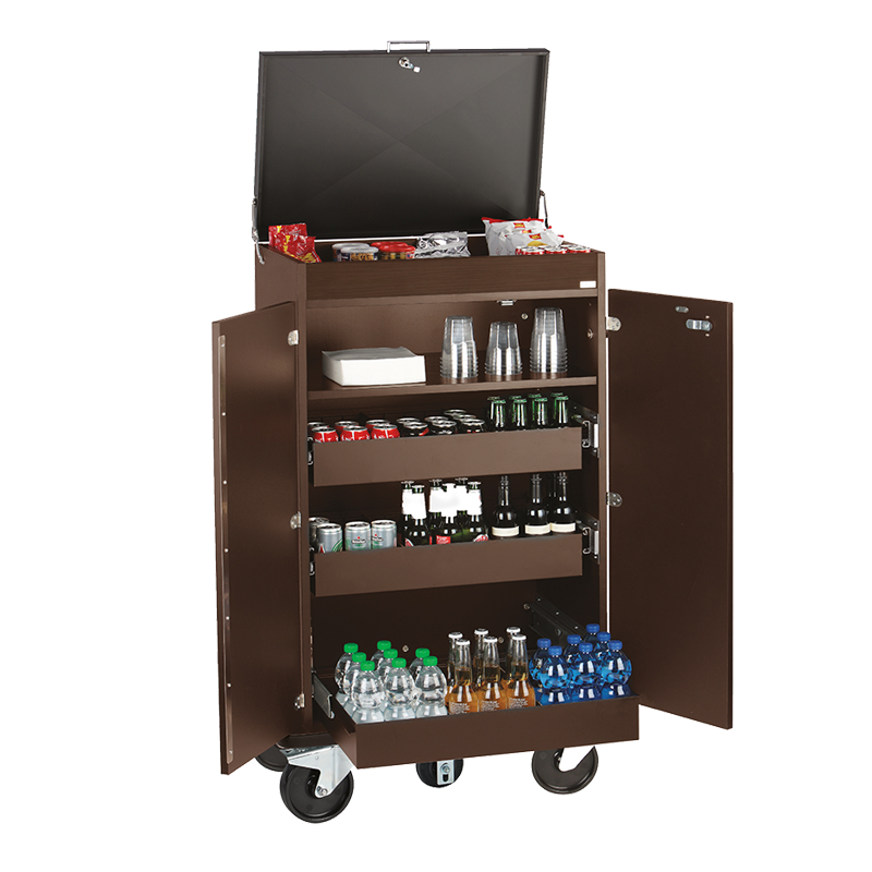 Carro de reposição de minibares B-PALACE M – em laminado de madeira e duas portas com fecho.