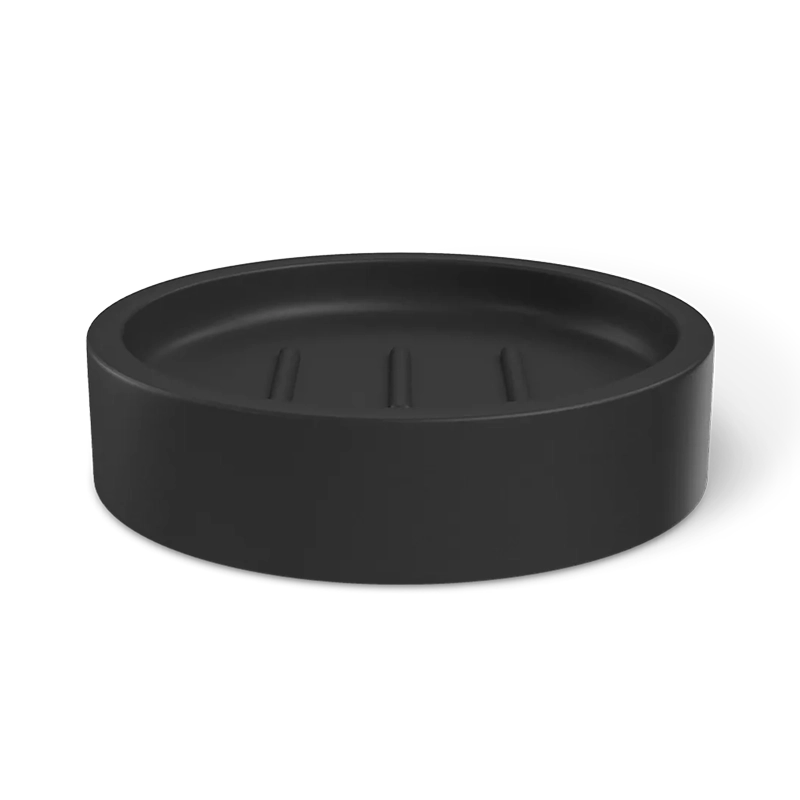 Saboneteira redonda Lago Black 6339, da marca Bentley Europe em resina preta.